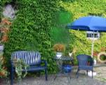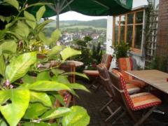 Die angrenzende Terrasse - gemütlich mit Korbmöbeln ausgestattet und für Raucher gestattet
